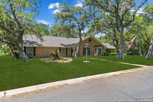 Nestled on a corner lot in the sought after Shavano Park neighborhood, this inviting 3 bedroom 2 1/2 bath home offers both privacy and space. The property sits on a sprawling .74 acre lot with mature trees and backs up to a serene greenbelt providing a peaceful, natural backdrop. Key features include a covered patio- perfect for outdoor dining or relaxing. The spacious family room with beautiful stained glass windows & cozy fireplace creates a warm and welcoming atmosphere. The location is prime with easy access to shopping, dining and highly rated schools. This home is an exceptional find ready for updating and presents a fantastic opportunity to customize and make it your own.