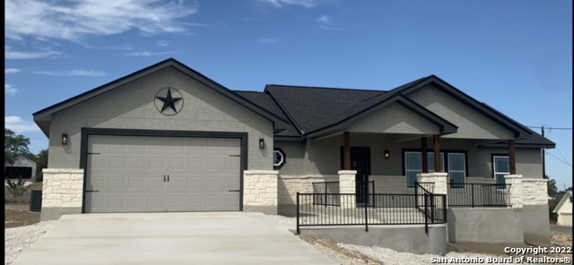 This beautiful new one story 3 Bedroom - 2 Bath, split floor plan home located in the Valeer Creek Golf Community is calling your name! It's a Golf Lover's Paradise! It is walking distance to golf club and driving range! This well built house has everything and more! The entrance has a nice large porch for relaxing - a large electric house warming fireplace for the winter months - with rock to the ceiling! If you are looking for an open plan with lots of light, this is for you! The house has a large family room, a large utility, a large master closet, a large master bedroom, a finished out garage, and a back deck off porch area for barbecue nights or just relaxing! It's centrally located between San Antonio and Austin. Ownership will allow you discounted golf fees and more! The centerpiece of Rockin' J Ranch is our beautiful 18 Hole Golf Course, Vaaler Creek. Voted among the best in the entire state of Texas, all real estate sales include basic membership. The community pool, poolhouse, and clubhouse are built with rustic charm, and there are miles and miles of hiking trails and outdoor activities. The natural land lays habitat to all kinds of wildlife, perfect for photography and seclusion.