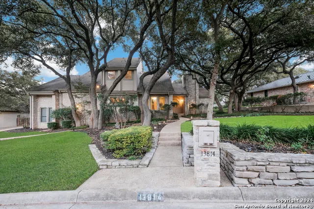 Come enjoy this stunning home located on a .42 acre lot in the quiet rolling hills of Bluffview Estates. This open concept boasts a large entry, dining room with special lighting, fully renovated wet bar with seating, copper sink, ice maker and generous cabinetry, living room with fireplace, vaulted ceiling and wall of french doors overlooking the backyard, family room, spacious secondary bedrooms, cedar closet, updated bathrooms, utility room with counter and great storage, wood floors throughout most of the home and replaced windows with Renewal by Anderson. Private primary retreat tucked away from the rest of the home showcases high ceilings, sitting area, office/study with built-ins, outdoor access, fireplace and ensuite bathroom that includes huge custom closet, soaking tub, double vanity and enormous walk-in shower. The chef's kitchen features smooth cooktop with downdraft, wine cooler, island, amazing storage and cabinetry, built-in oven and microwave, updated hardware, stainless steel appliances, deep sink and herb shelf at window. Backyard oasis is delightful for nature viewing, outdoor dining underneath the covered patio and enjoying the spectacular oak trees. Other amenities include backyard shed with electricity, fully floored walk-in attic, replaced water softener and water heater, oversized garage, tile roof, covered front porch and updated lights, fans and fixtures. Conveniently located close to Major Highways, Airport, Medical Facilities, Shopping, Dining and San Antonio's Park Trail System. Outstanding NEISD schools!
