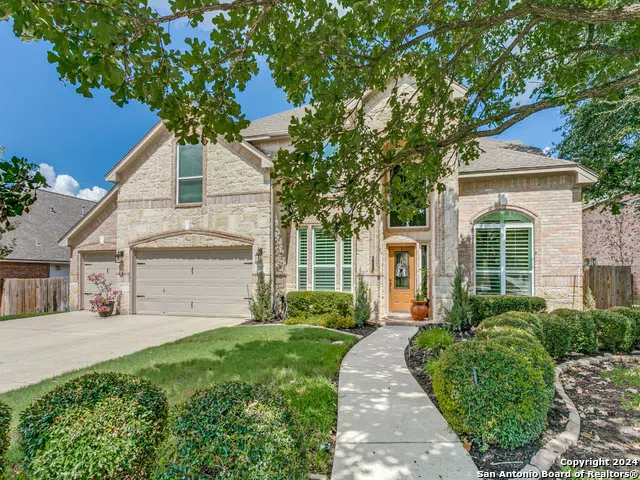 Roof Installed Oct 2024! Welcome to this stunning 5 bedroom, 4 bath home that features a three car garage plus a tandem space in the highly sought-after, award winning neighborhood of Mesa Grande. The expansive layout includes a spacious kitchen with gas stovetop. The inviting family room offers generous space for relaxation and enjoyment. The new windows illuminate the space with natural light, while plantation shutters and custom roller shades provide privacy and style. The large primary suite promises a tranquil retreat, while the convenience of a secondary bedroom down offers flexibility for guests. Need to work from home? No problem - there's a designated home office space just waiting for you. Step outside and enjoy the serene beauty of the landscaped yard, perfect for relaxing or entertaining guests. Award winning NEISD schools. Hardy Oak Elementary, Lopez Middle and Reagan High School