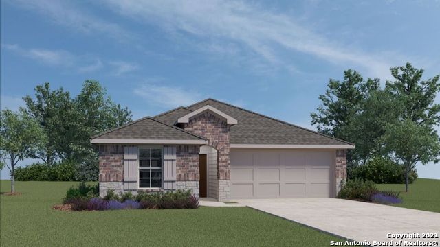 This home is currently under construction. The Caden plan is a one-story home featuring 3 bedrooms, 2 baths, and 2 car garage. The entry opens to two guest bedrooms and bath. An open concept dining and family area leads into the center kitchen. The kitchen includes a breakfast bar, beautiful granite counter tops, Whirlpool stainless steel appliances, and separate pantry. The bedroom 1 suite features attractive walk-in shower, marble countertops, and spacious walk-in closet. The standard covered patio is located off the family room. Additional features include full yard sod and irrigation system, and a professional landscape package. This home includes our HOME IS CONNECTED base package which includes the Amazon Dot, Front Door Bell, Front Door Deadbolt Lock, Home Hub, Light Switch, and Thermostat. Oak Creek Estates has it all! From granite countertops and stainless steel, natural gas appliances in the kitchen, to spacious open-concept design layouts and two-car garages, nothing is left out of this stunning new home community. These beautifully crafted homes are located off I-35 and Goodwin Lane, providing easy commutes to San Antonio & San Marcos, HEB Plus, and gorgeous Gruene, TX. Enjoy six modern floor plans ranging from 1, 296 square feet to over 2300 square feet. Oak Creek new construction homes will feature D.R. Horton's new smart home system, Home Is Connected, ensuring security and peace of mind for all home buyers. NEW PHASE NOW OPEN. Additional features include: On-site Comal ISD elementary school Resort-style amenities including pool, splash pad, and playground. Conveniently located 5 miles from Schlitterbahn Waterpark and popular tubing spots on the Comal River. 15 minutes from golfing, hiking, sightseeing, and entertainment at Landa Park.