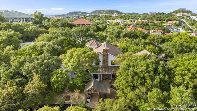 Incredible elevated home overlooking massive oaks and Hill Country on gorgeous 1.1 acre lot. Home was just updated with all new paint and bathrooms updates. Countertops include quartzite and marble. Warm hardwood floors gleam throughout. There is a private guest suite with it's own staircase, living area, and balcony. Stunning architecture and hand hewn beams define this modern classic. Lush landscaping adds to the sublime privacy.