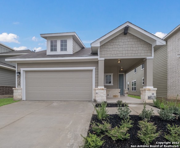 Spacious one story, 3 bedrooms, 2 full baths with 1,567 sqft, 2-car garage, and covered front and back patios. Enter upon the large living room that opens up the kitchen and dining areas, perfect for entertaining or family gatherings. Enjoy luxury vinyl plank flooring in the common areas and upgraded tile selections in the bathrooms. The modern kitchen hosts walk-in pantry, stainless steel appliances with a 5-burner range, granite counter tops, upgraded white cabinets and an eat-in kitchen island. The spacious master bedroom features a beautiful box out window with seating area that brings in natural light. The master bath includes a double door entry, His & Hers sinks, walk-in closet, and walk-in shower with mudset floor tiles. Smart Home system with Wi-Fi enabled thermostat, coach lights, and garage door opener. Other upgrades include upgraded LED and focal lighting, 2" faux interior wood blinds, energy saving features, full irrigation, and fully sodded front & back yard!