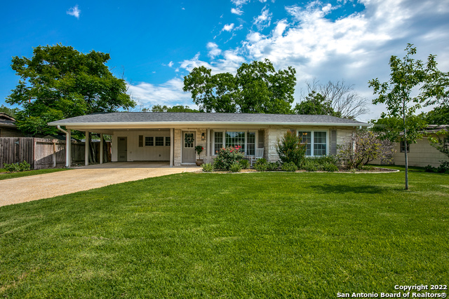 Charming 4 bedroom, 3 bathroom home located in the Alamo Heights School District that was completely updated in 2020. The large, eat in kitchen opens onto the spacious living area with abundant light. The home features gorgeous hardwood floors, generously sized utility room and walk-in pantry. The property is handsomely landscaped and has a large backyard with mature trees and a covered patio perfect for entertaining!