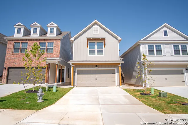The Palmer at 8923 Summerwood Bend in Rosemont Heights is a 3 bedroom, 2.5 bath home styled with a beautiful Modern Farmhouse front elevation and features Rosehaven's Elite Level 3 interior finish package, including Lyric Oak LVP flooring on the primary level, a modern mix of blue and white kitchen cabinetry, Terra Luna Quartz kitchen countertops, and gorgeous Champaigne Bronze kitchen hardware. The result is stunning, especially when you soak in the large open floor plan and the lush greenbelt views from the kitchen and dining room. The home is also extremely functional, with a large walk-in closet, double vanity, and oversized walk-in shower in the primary bedroom, plus two additional bedrooms, and a well-designed game room convenient to the backyard. Rosemont Heights is a small, private, gated oasis in the center of the most economically vibrant part of the city near the Medical Center, USAA, UTSA, Valero, and other major employers. It is 8 minutes from the Shops at La Cantera and 5 minutes from an HEB Plus, Target, and Lowes. It is served by several nearby Northside ISD schools, including O'Connor High School, Stevenson Middle School, and Braun Station Elementary. A children's park is located on the private grounds of the community as well as a dog run, and for those looking for more challenging outdoor options, OP Schnabel Park and the Leon Creek Greenway are 5 minutes away. Rosemont Heights is built by Rosehaven Homes, a local San Antonio builder committed to classic architecture and green building standards. You will be amazed at how much effort is put into making your new home beautiful and how many green building upgrades come as standard features, such as foam insulation, a conditioned attic, an electric car charger, a high efficiency air conditioner, and more.
